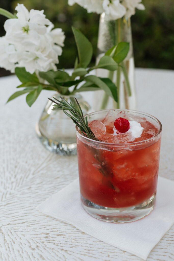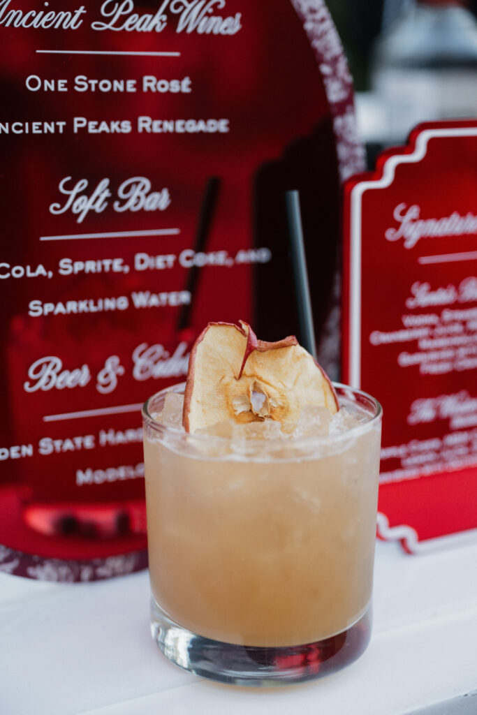 When your goal is delicious drinks to serve at outdoor events for chilly fall and winter nights, you bring in the experts. We leaned into themes that make you feel cozy with a touch of childhood nostalgia and whimsy, incorporating ingredients such as real apple cider (not to be confused with apple juice) and marshmallow. To further tie in the seasonal fall and winter colors of both red and gold, we opted for drinks that could be a statement and a piece of the color themed decor.