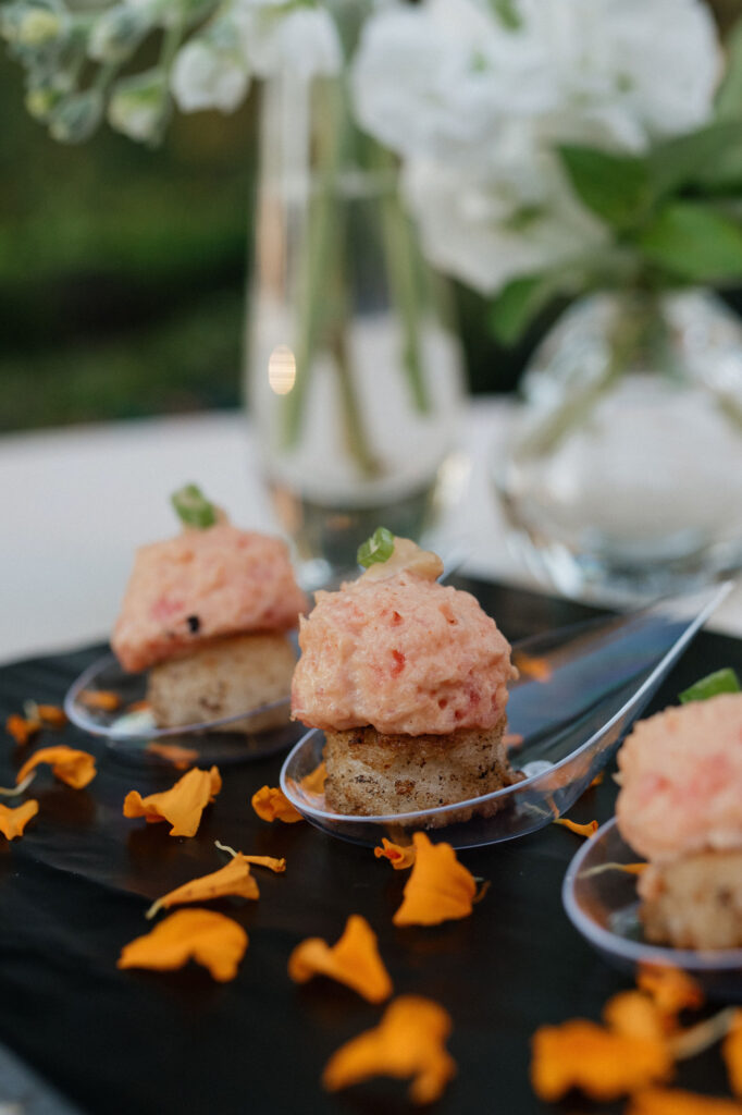 For tray passed hors d’oeuvres for the cocktail-style reception, a curated menu of fan-favorite savory bites for chillier nights was selected, ensuring all major allergy and dietary restriction groups were catered towards. When youโre hosting an event, you want to guarantee all of your guests are able to find something to eat that theyโll genuinely enjoy.