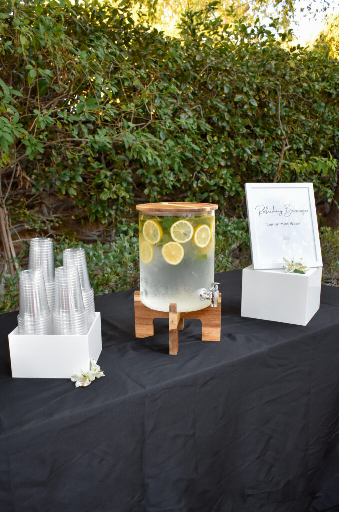- Refreshing Beverages: Infused Lemon Mint Water and Bottled Water