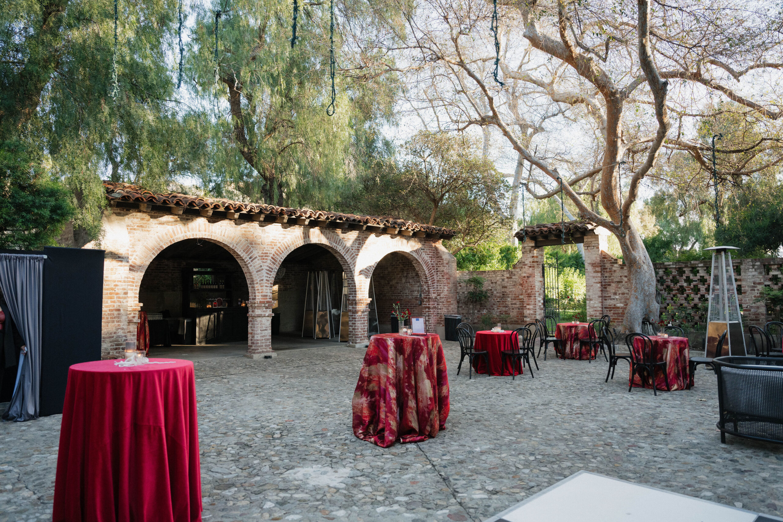 Guests embraced the chic red-hued cocktail attire dress code, while channeling Old-Hollywood glamour inspired by Selena Gomez and Benny Blancoโs much-talked-about wedding aesthetic earlier this year. The bold, romantic deep red & gold color palette paired seamlessly with the Hummingbird Nest Ranchโs European-inspired architecture and its picturesque garden courtyards in Santa Susana, CA.
